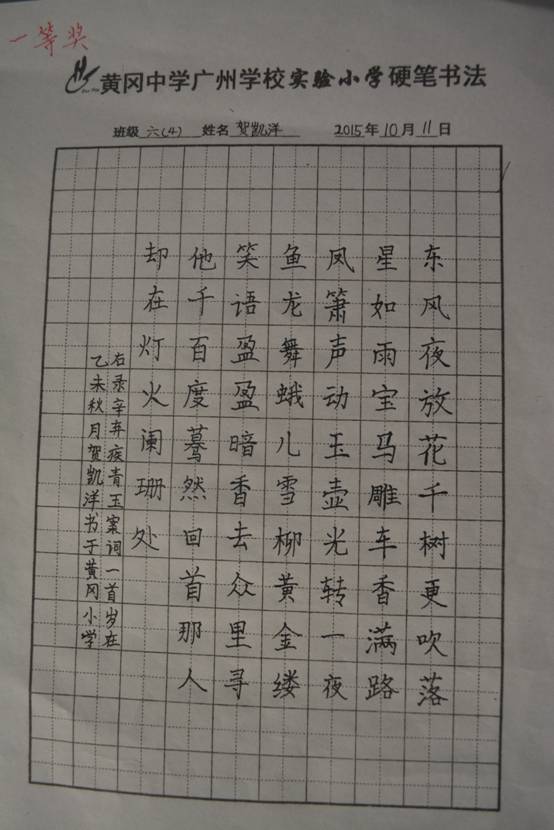先上图一张,这是黄广小学书法教师陈建祥范作,孩子们称为“大师”的大作。