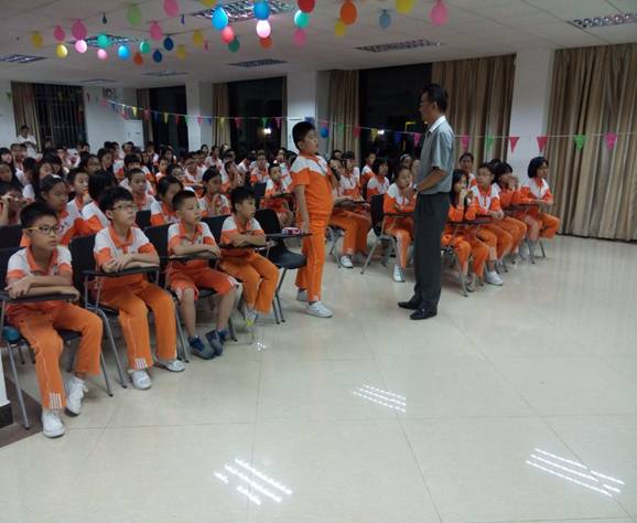 10月19日晚,黄广小学范小梁常务副校长在大会议室给六年级全体师生开展讲座,指导孩子们“怎样培养学习好习惯”。