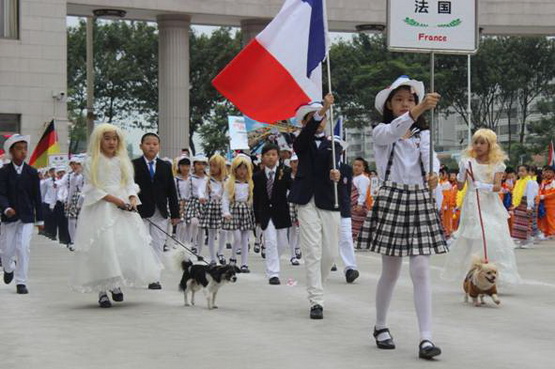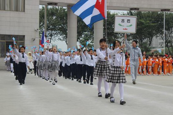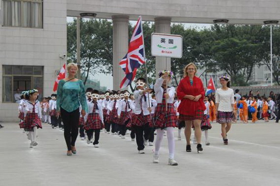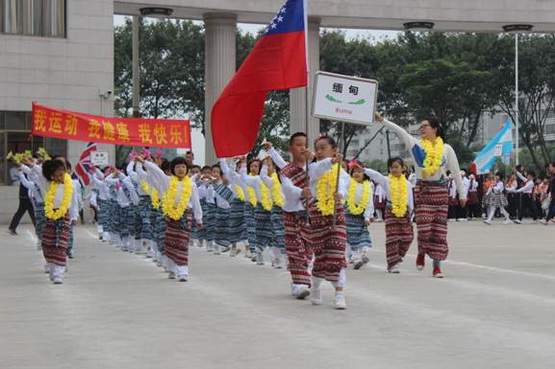 各班方阵入场式上,黄广萌娃尽情演绎世界35个国家不同的人文特色和民俗风情。
