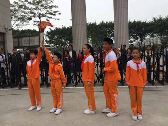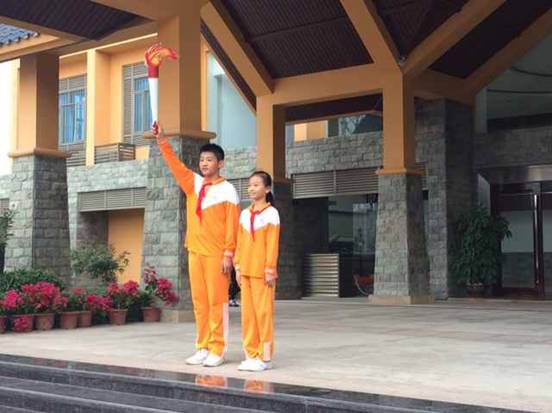 第一棒:当选广州市第十三届少先队理事会成员的刘铭烯、程海心同学