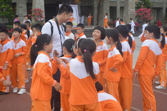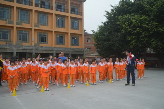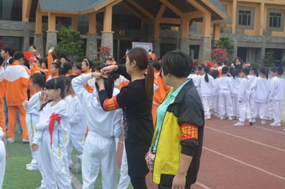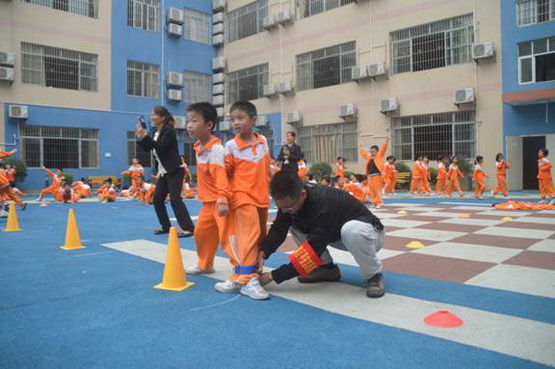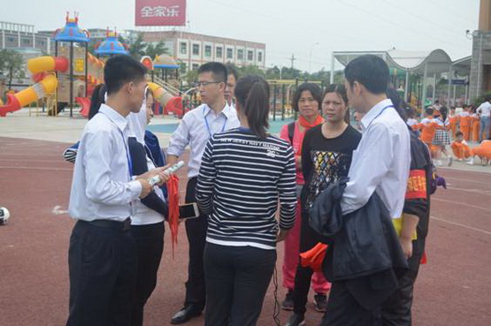 家长志愿者组织孩子们有序参赛。