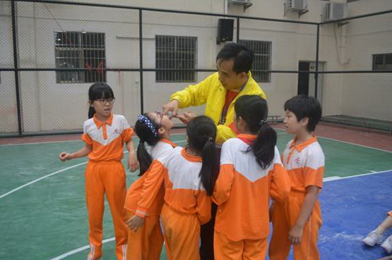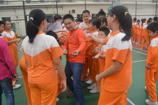 比赛间隙,还不忘做一回“孩子王”。