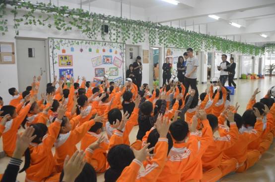 双手传递的是,伙伴的爱心。