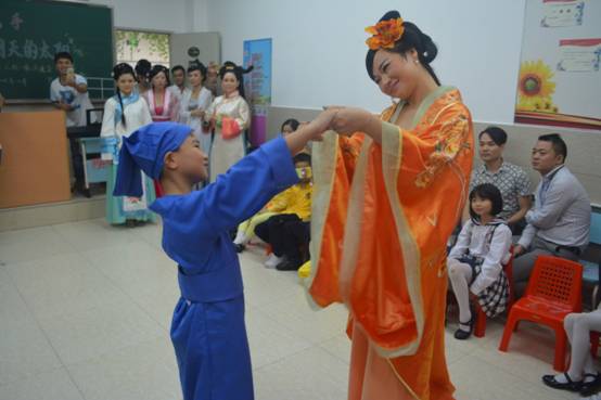 家长积极为班级义务提供音响设备、服装器材,为班级活动组织出“金点子”。不得不提下,一(11)班沟通会中展示的以“穿越”为主题的亲子走秀活动,成为本次沟通会中最亮的创意,该创意源自该班上某同学家长。