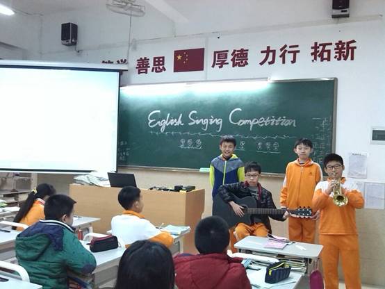 一首首极富感染力的英语歌曲表演,尽情地展示着同学们的才华。同学们在这些活动中陶冶了情操,增长了知识,也提高了英语表达能力,进一步激发了学英语、用英语的热情。