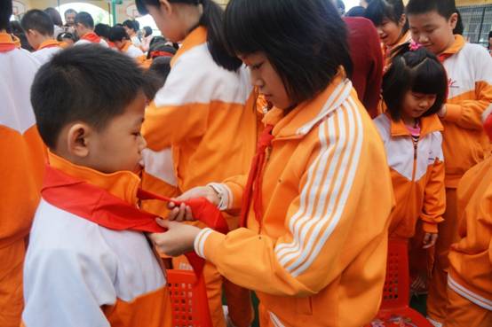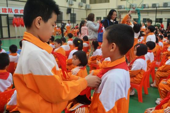 入队仪式现场还举行了建队仪式,聘请了一年级的班主任为各中队辅导员,相信在他们的带领下,黄广小学的少先队阵地建设将更上层楼,中队活动开展得更加丰富多彩。