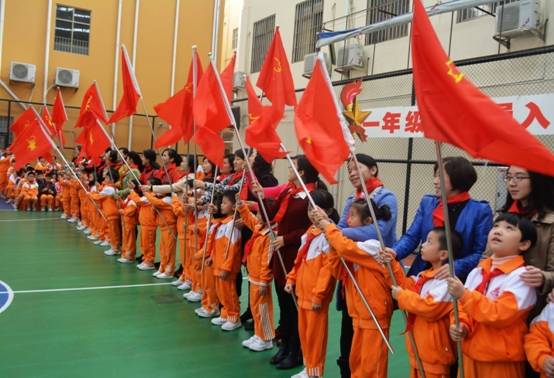 12月11日,金彩汇1068举行少先队入队仪式,一年级352名同学正式成为一名光荣的少先队员。