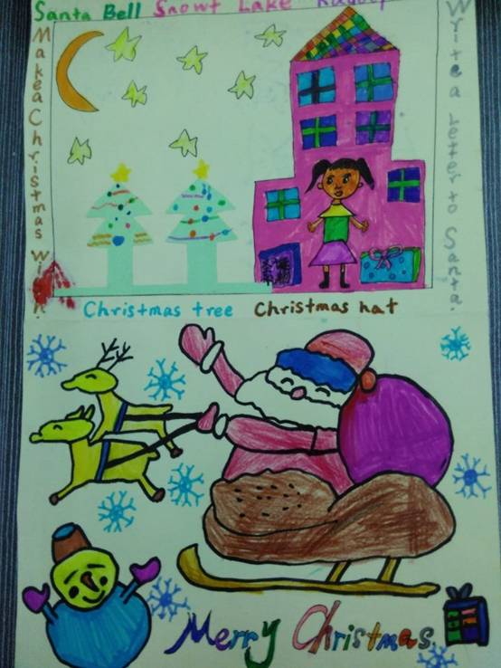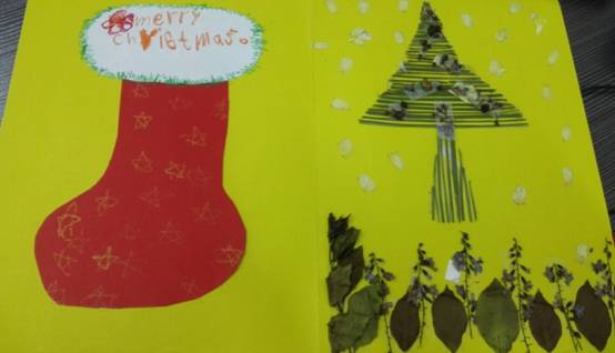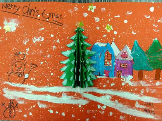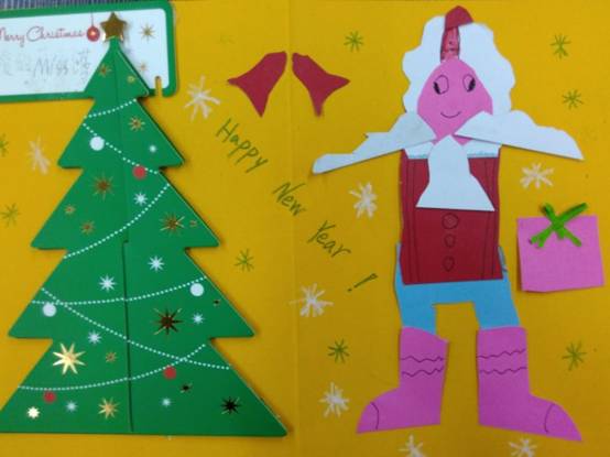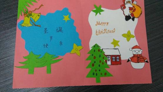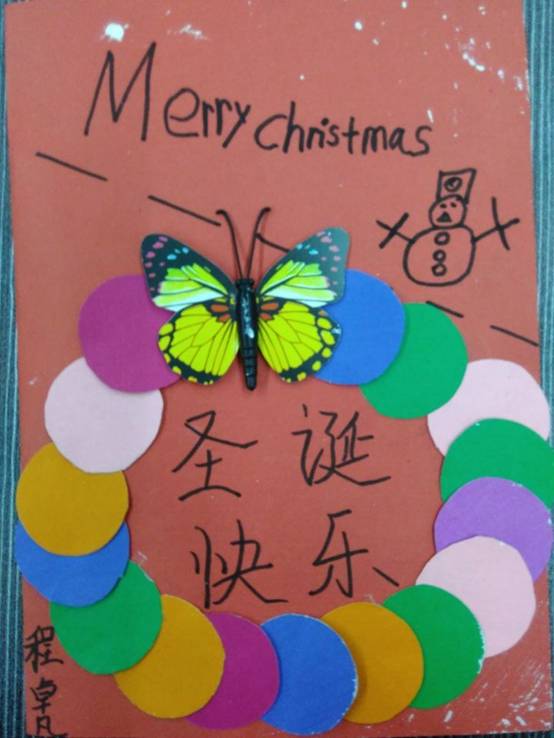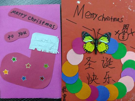 本次圣诞贺卡设计大赛活动中,孩子们设计的圣诞贺卡色彩鲜艳,使用了各色卡纸,贺卡上的图案取材各有特色,或用蝴蝶标本,或用剪纸,或用水彩笔描绘,或用橡皮泥等材料做成了圣诞袜、小礼盒、圣诞老人等有关圣诞节元素的图案。