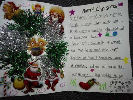 大多数贺卡上除了有图案之外,还有中文或英文的,写给父母或老师的圣诞祝福语。