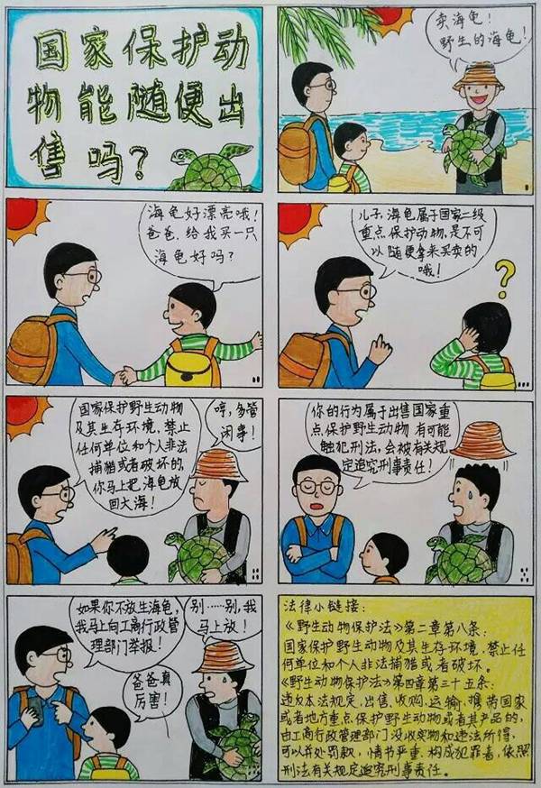 12月25日,花都区“好说法”政府公益普法微信公众平台推出该平台特约漫画作者——黄广小学黄雯冰同学漫画作品《鸟和龟都不能随便抓》。