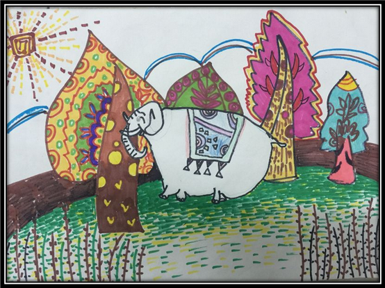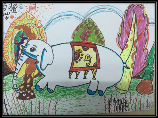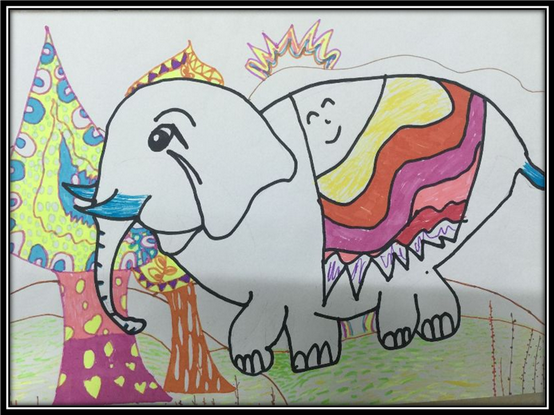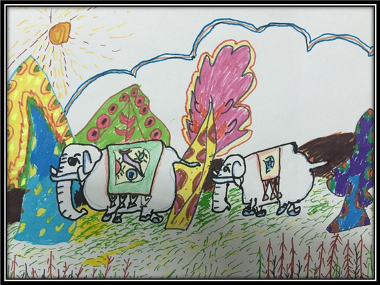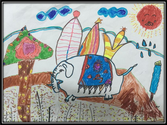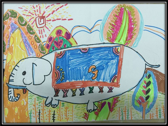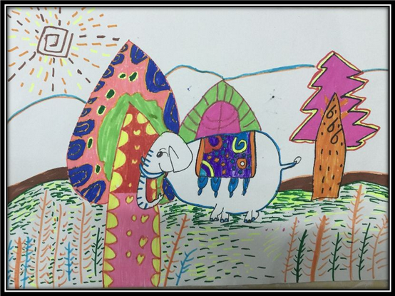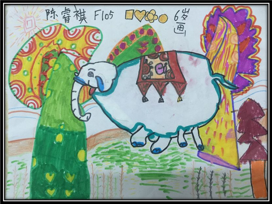虽然孩子们的画还很稚嫩、粗糙,近乎天马行空,但是半年里他们从学习如何握笔到学会画浪线、直线,学会构图、上色,已经是一个了不起的蝶变。