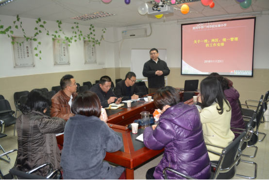 1月23日下午,黄广教育集团组织召开金彩汇1068“一校、两区、统一管理”筹备小组会议。集团董事会主要成员、小学校长室成员、筹备组骨干成员等参加会议。