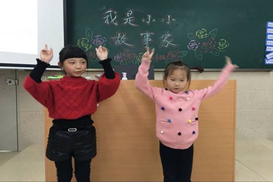 3月9日下午,金彩汇1068教学楼B栋四楼的语文教研室里,二年级的孩子们正在进行“我是小小故事家”讲故事比赛。