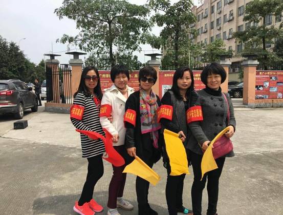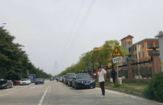 下午2:00,黄广小学萌爸萌妈们早已等候在校园周边,车辆摆放整齐有序。热心的平安志愿者、交通疏导员已经站在自己的岗位上了,同时我们也不忘做热心人——扶老人过马路,为路人指引等。