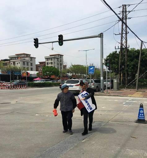 “我们一早来到学校,拿上手旗,戴上袖章,准备投入工作。本次我们主要负责小学正门、北门及转平步大道路段交通疏导。在黄广小学负责人的带领下,我们个个精神饱满,热情洋溢”。