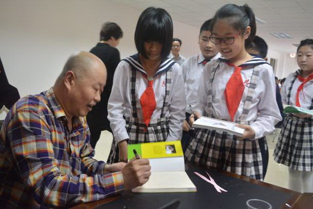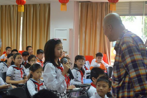 对以故事贯穿始终的课堂,孩子们兴趣颇浓。课前,孩子们现场朗诵了安老师作品《树上的眼睛》,并深受安老师表扬;课中,孩子们准备了很多奇怪的问题,与安老师进行了有趣的互动;课后,安老师和孩子们一起签名、合影。