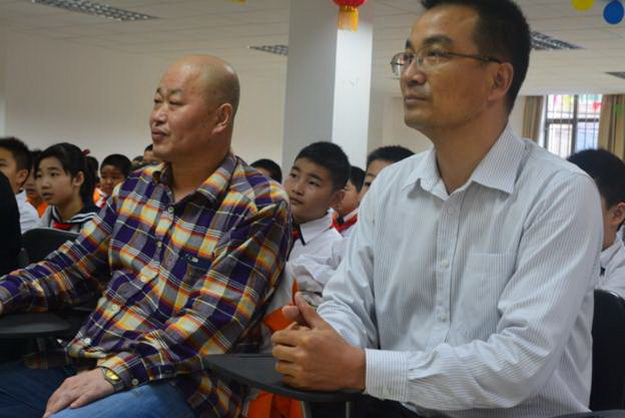 安老师和范小梁常务副校长一起欣赏孩子精彩的诗歌朗诵