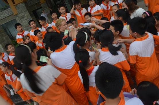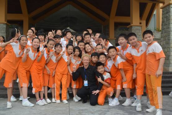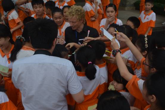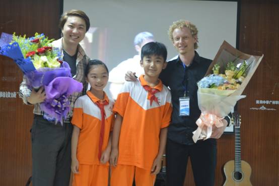 演出结束后,孩子们意犹未尽仍然沉浸在的优美的旋律里,孩子们用击掌、鲜花、留影、签名等方式表达了对莫勒先生的高超技艺由衷赞赏及对吉他艺术的喜爱。当然,黄广小伙伴流利标准的英语口语交流水平,也让莫勒先生惊呆了。