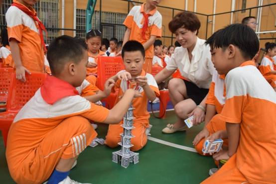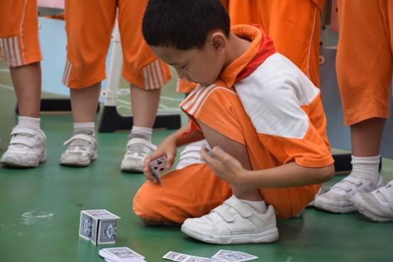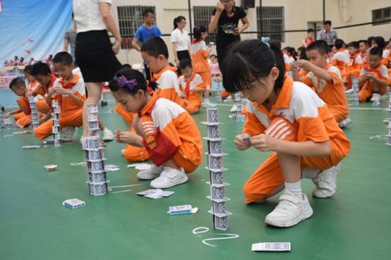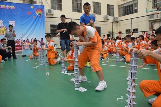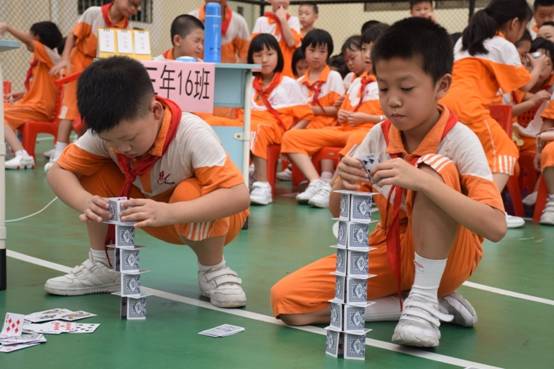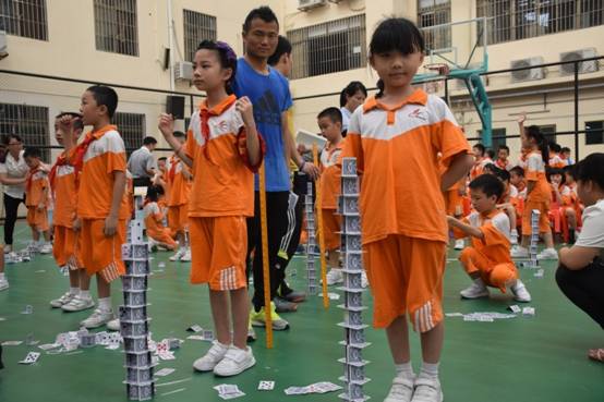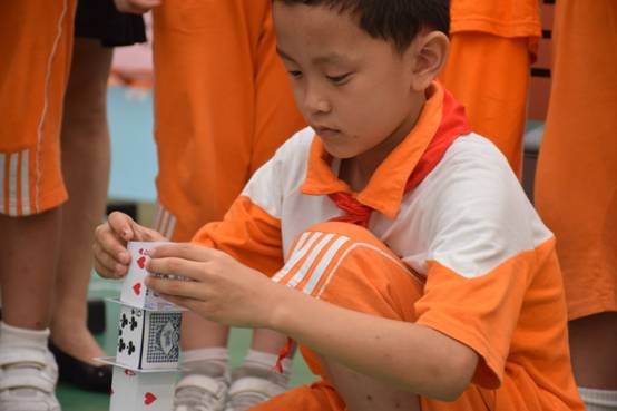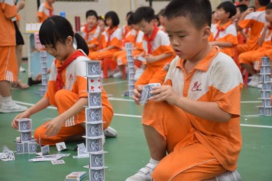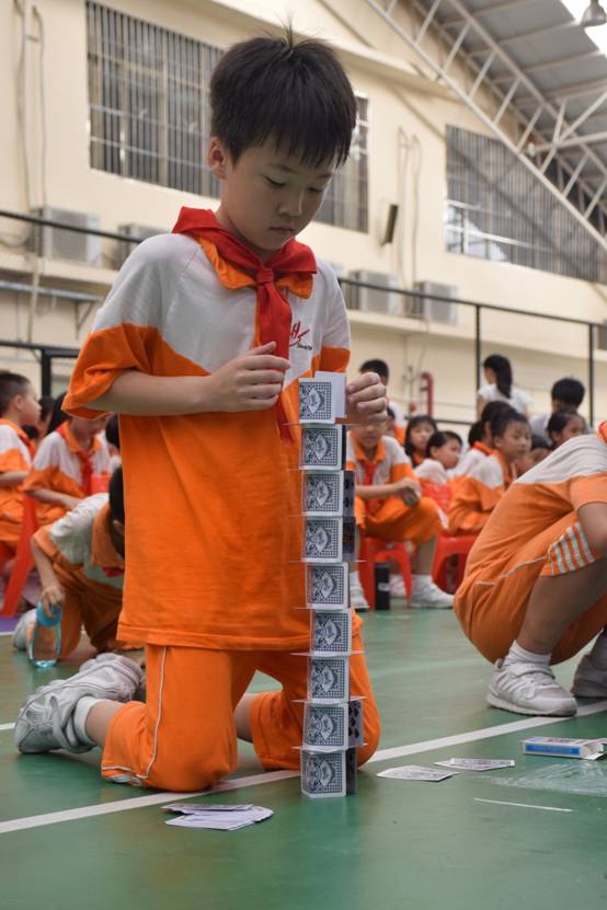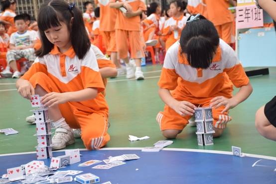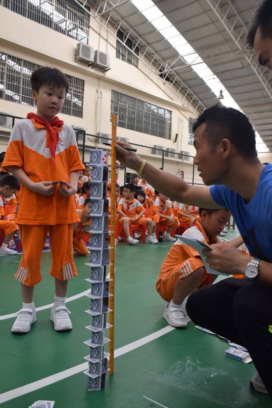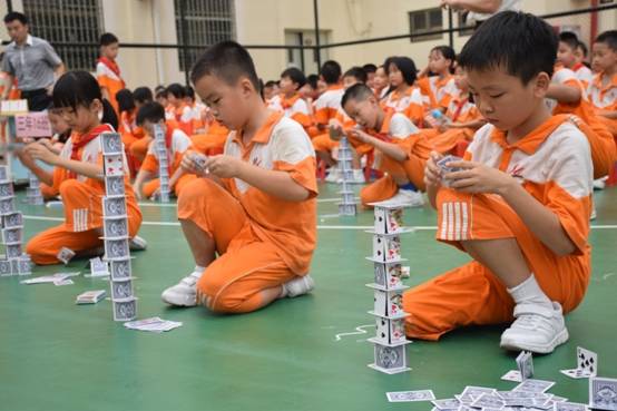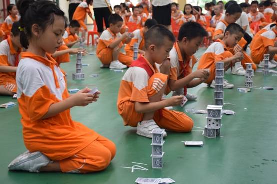 裁判老师一声令下,参赛选手们就开始专心致志地摆弄眼前的纸牌,一边折,一边动手搭高。