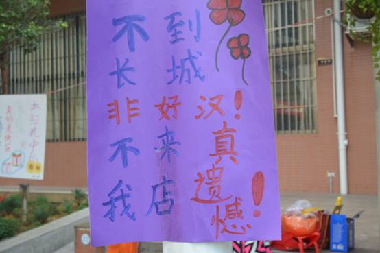 活动现场人山人海,每个班级摆起了自己的小摊,并精心设计了吸引顾客的海报、标语。摆上琳琅满目的商品,吆喝声、讨价还价声,真是热闹非凡。