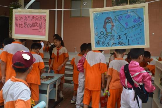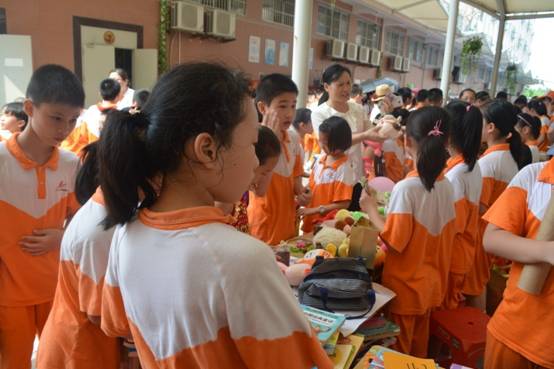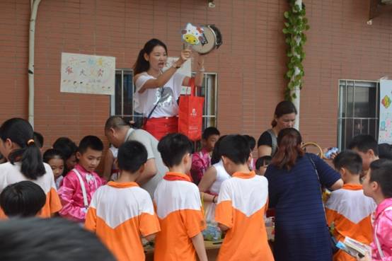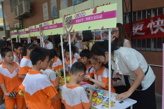 各班前来协助活动组织的家长朋友,为了让孩子们卖出更多的商品,他们或帮忙维持现场秩序,或在炎炎烈日下帮衬大声吆喝,用自己的实际行动支持孩子们爱心行动……