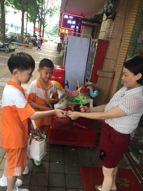 为了积极参与跳蚤市场活动,许多孩子们有的在花都来又来等大型商场、人流密集处摆摊设点,有的在家通过劳动获得报酬等方式筹集活动资金。