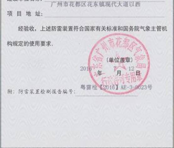 三、花都气象局验收建筑防雷装置,符合国家有关标准和使用要求