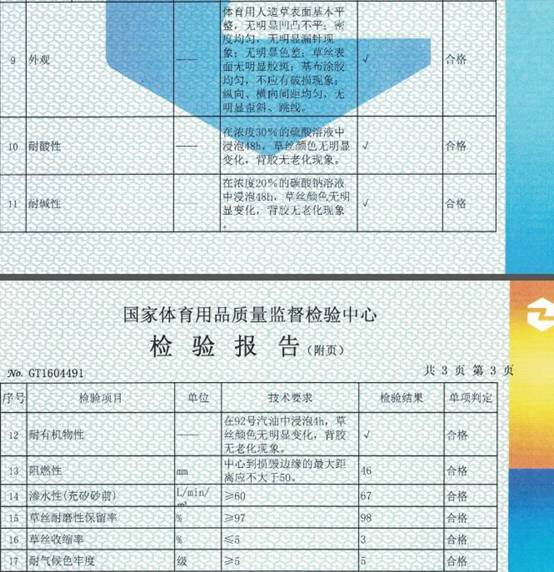 由国家体育用品质量监督检验中心出具的检测报告显示,各项指标按GB/T 20394—2013标准检验,所有检测项目合格。
