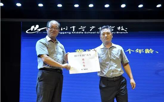 高三、初三年级主任分别从孙传华副校长、蒋晓明副校长手中接领“军令状”,现场承诺将在新一年的高考、中考上全力以赴,勇创佳迹。