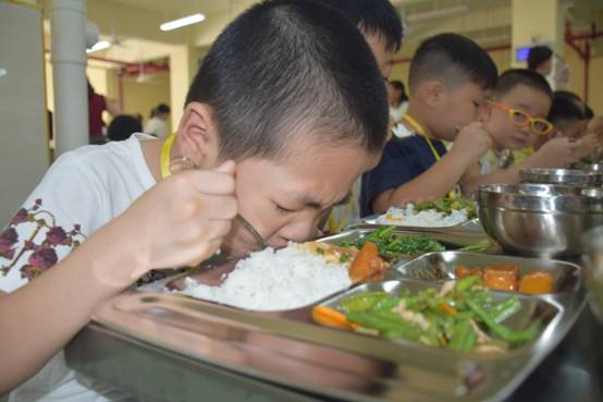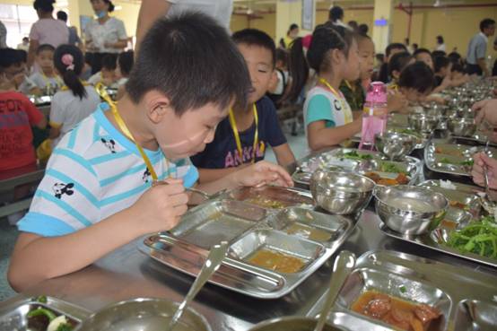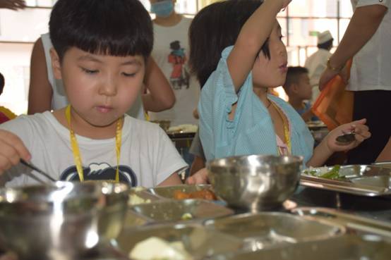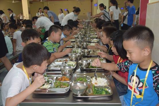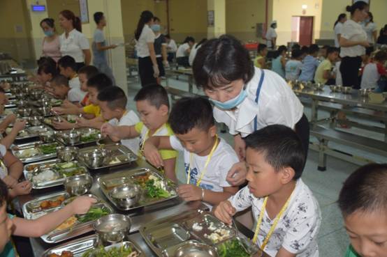 孩子们用餐,老师、生活老师、食堂工作人员齐心协力,共同帮助。