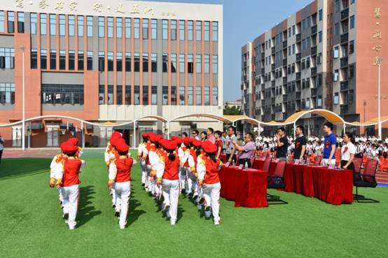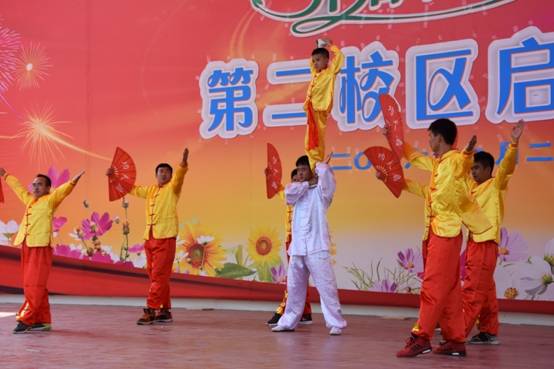 典礼上,学校师生共同演绎的开场鼓铿锵有力,犹如万马奔腾,排山倒海;曾获得国家级小金钟比赛银奖的丫丫组合献唱的《共同成长》犹如黄莺出谷,娓娓动听;师生同台表演的武术稳健帅气,灵动潇洒。
