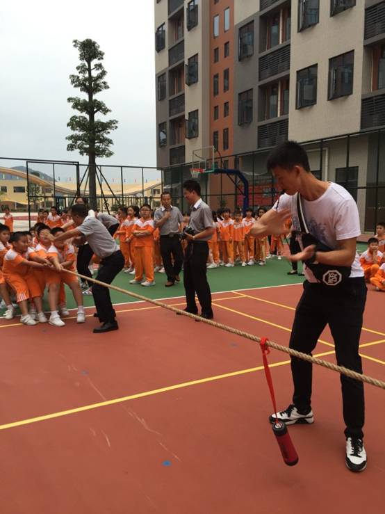 10月11日下午,三年级全体师生在校篮球场上举行了“魅力十月”拔河比赛。