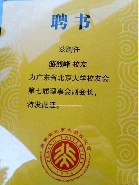 黄广教育集团校董&CEO游烈峰当选广东省北京大学校友会副会长,同时获评为北大“优秀校友”。