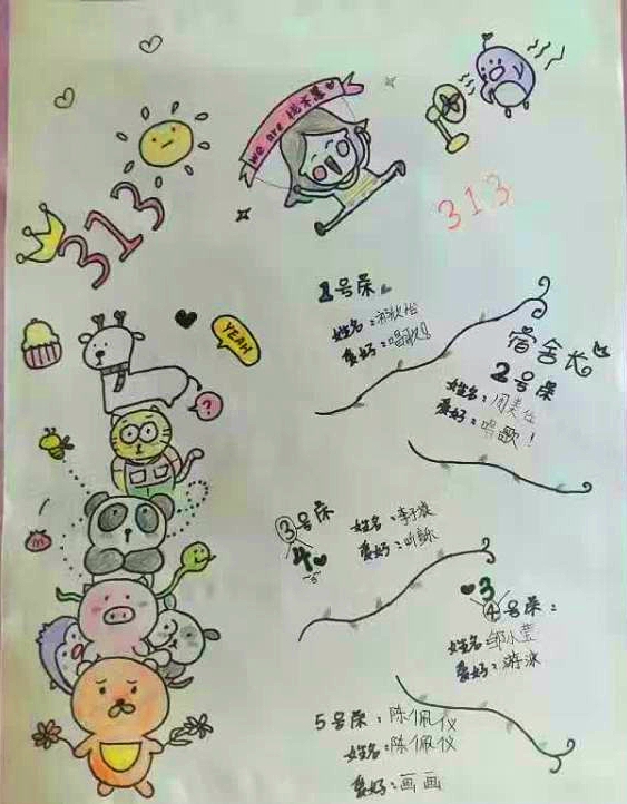 健康向上的宿舍文化对孩子成长有着举足轻重的作用,既美化孩子们的宿舍环境、丰富校园生活、陶冶孩子们的情操,还能增强宿舍成员的团结协作能力,通过“文化认同”的方式,营造“家”的荣誉感、归属感,孩子们之间通过深入了解的方式增进了友谊。