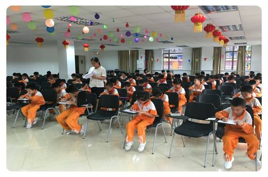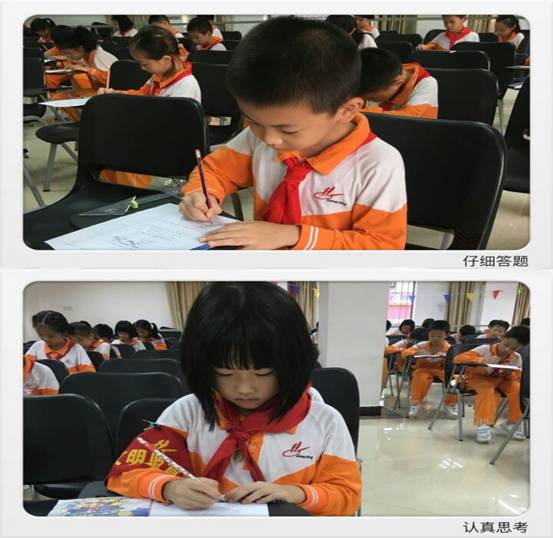 瞧,孩子们多认真呀!有的埋头奋笔疾书,有的苦思冥想,还有的一边做题,一边露出了灿烂的微笑……