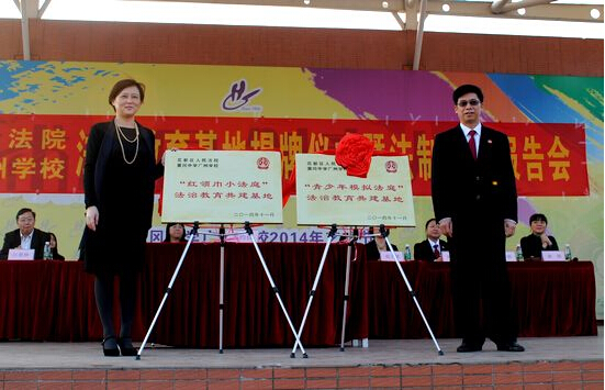 花都区法院与我校联合共建法制教育基地、并成立 “红领巾小法庭”,具有实践教育意义的各项活动陆续开展。