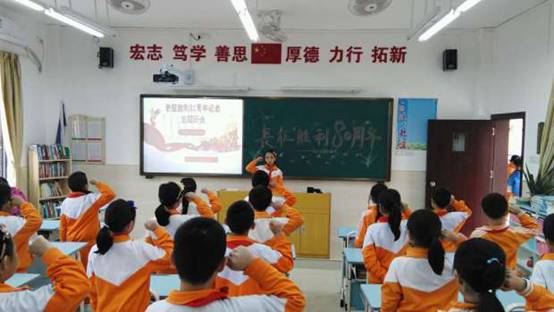 范小梁常务副校长作为党员代表向全体少先队员提出了《今天我们怎样纪念长征》的讲话。