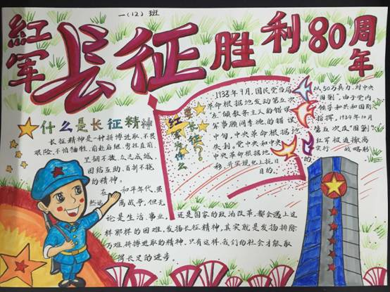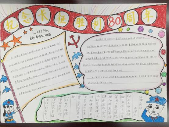 每一张精美的手抄报融汇了孩子们对长征的认识、对长征精神的理解,学长征精神做红色传人,塑造面对困难乐观自信、吃苦耐劳、自强不息的健康心理,同时教育队员铭记历史,珍惜今天来之不易的幸福生活。