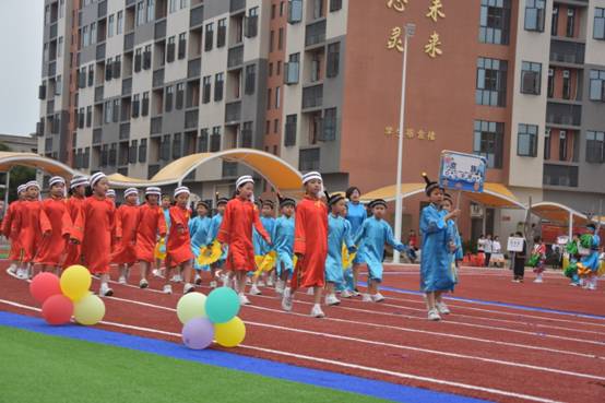 11月8日,金彩汇1068(花东校区)以“民族风采 魅力运动”为主题的第四届体育节开幕式上,各班为了彰显特色,通过广泛查阅资料挖掘民族文化、定做民族服饰和道具、编排民族舞蹈等方式,充分演绎民族文化与风土人情。