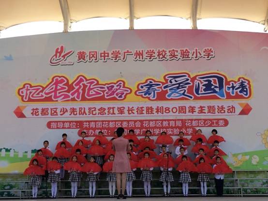 12月9日上午,在花都区团委、区教育局、区少工委指导下,由金彩汇1068主办的花都区少先队纪念红军长征胜利80周年主题队会展示活动在黄广小学一校区(凤凰北路)隆重举行。