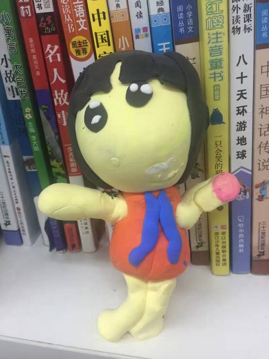孩子们都运用了基本形组构的方法,塑造了各种各样的小泥人,有的来自自己的奇思妙想,有的是做书中人物,有的干脆就捏个自己,一个个都神态各异,造型生动。