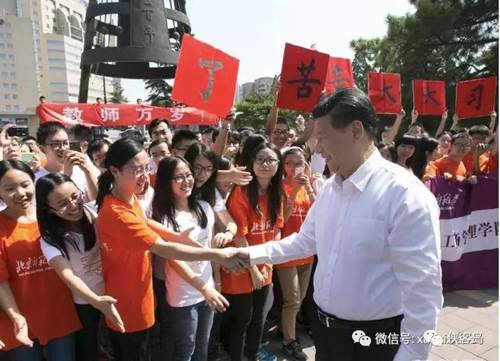 五四青年节,习近平总书记在北京大学,听学生朗诵《沁园春·长沙》,与哲学家汤一介促膝长谈,座谈时指出要让青年学子“扣好人生的第一粒扣子”;教师节,他去往北师大,称赞教师是人类历史上最古老、最伟大、最神圣的职业之一,称“国将兴,必贵师而重傅”;儿童节,在海淀民族小学,习近平系着红领巾,与小朋友互致少先队礼,给他们讲自己小时候的故事,告诉他们“精忠报国是一生目标”;更早时,他视察中南大学、国防科大,念念不忘的也是建设“世界一流大学”。