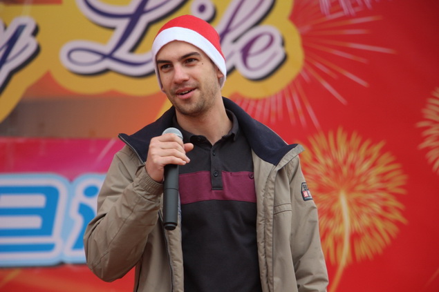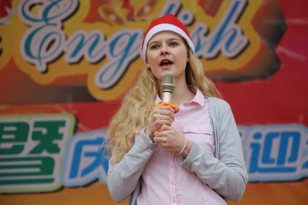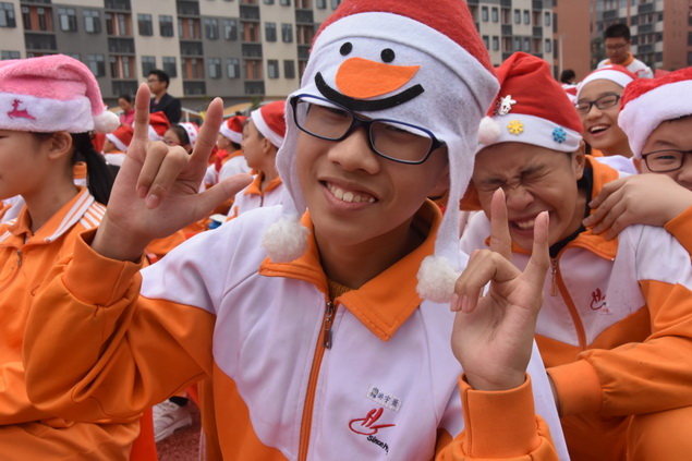 两位外教和同学们亲切互动,祝福全校师生圣诞快乐,将会场推气氛向高潮!