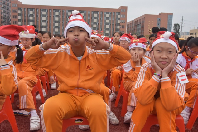四年级同学在刘朵老师的指挥下,表演了圣诞歌曲串串烧,悠扬的音乐,悦耳的歌声,真是一场听觉盛宴。