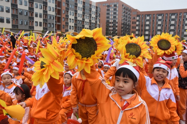 一年级的小朋友带来的歌舞表演 I have two hands,有唱有跳,活泼可爱!