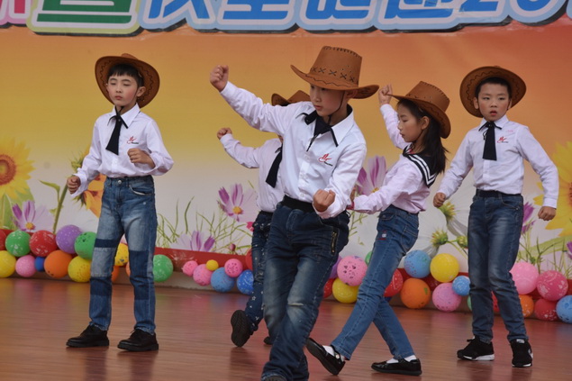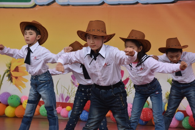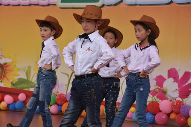 三年级的小朋友献上的Honey Pokey舞蹈,帅气的帽子配上干练的牛仔裤,俨然一个个“小牛仔”。