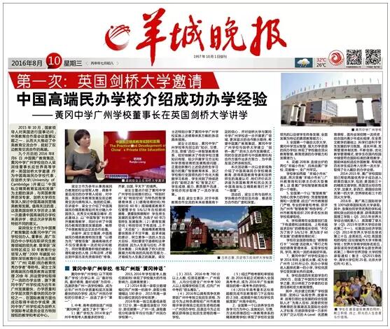 2016年8月6日,中国黄广教育集团、金彩汇1068创办人梁润佳董事长应世界高等学府——英国剑桥大学邀请,作为中国高端民办学校代表,在剑桥大学(University of Cambridge)开展以“中国私立精英教育实践和发展”为主题的演讲,与英国教育界资深专家、剑桥大学师生等就上述办学经验深入探讨中国高端民营精英教育发展。这是英国剑桥大学历史上第一次邀请中国高端民办学校来英讲学。