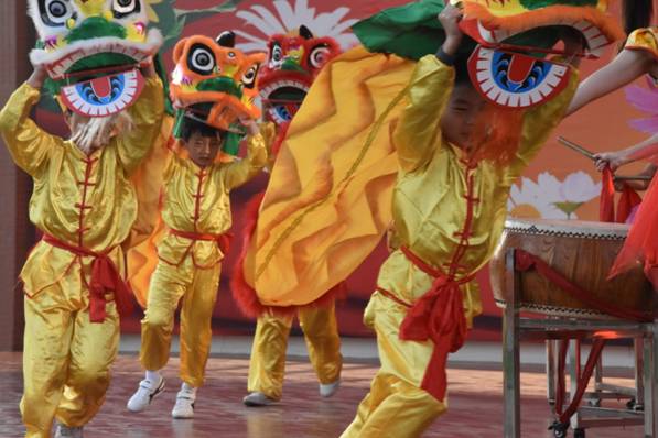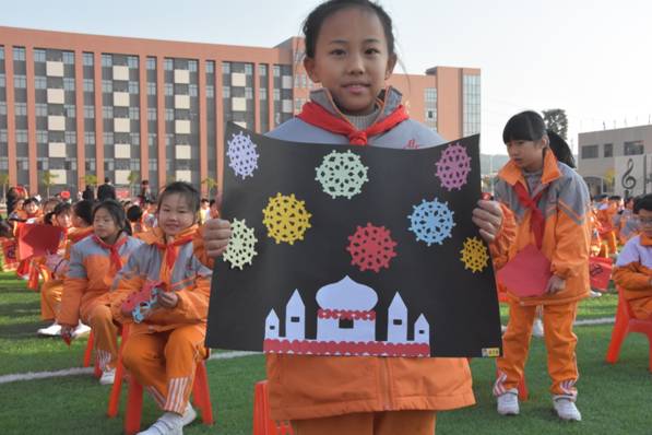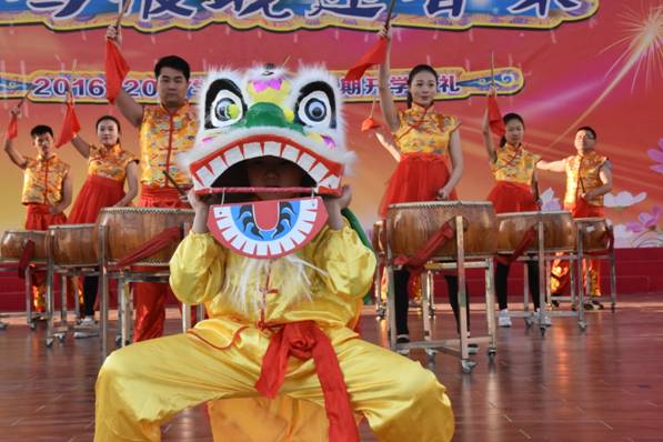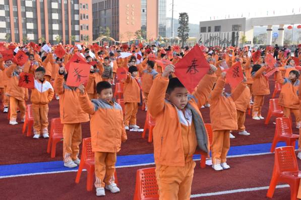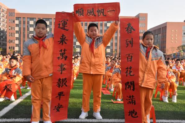孩子们挥舞着手中的“福”字、春联……别开生面的开学典礼就此拉开序幕。