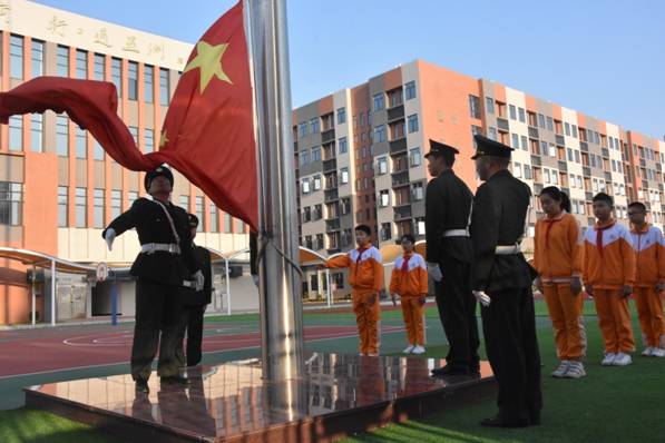@校警叔叔和国旗班孩子一起升国旗