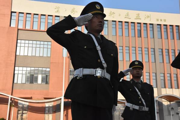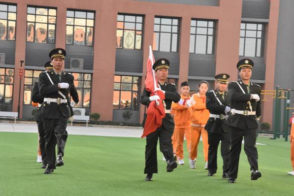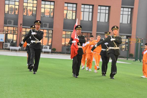 本学期,学校德育处对国旗班建设进行改革,利用寒假时间,组织校警退伍军人加入国旗班,并坚持进行训练,校警叔叔在开学典礼上第一次以饱满精神亮相,让孩子们迅速找到校园正常学习的精神状态。